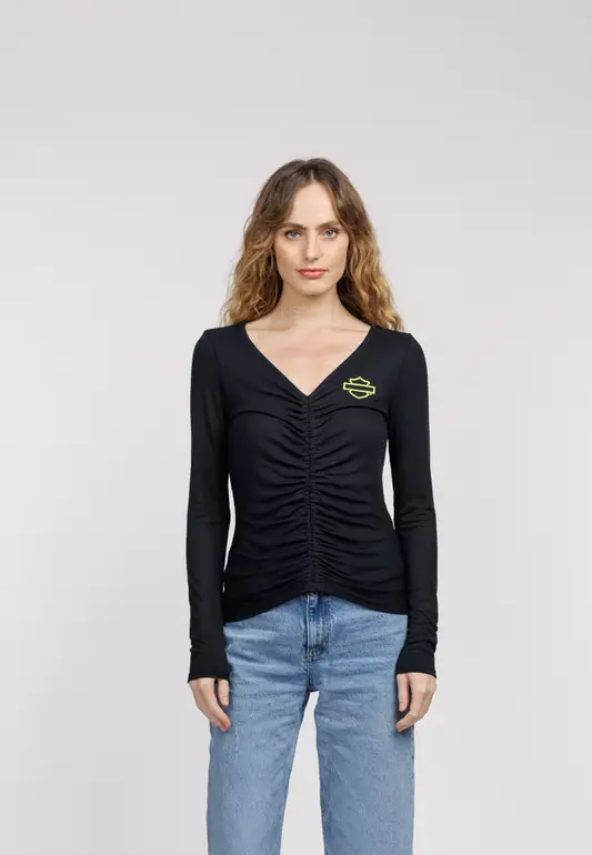 The amazing thing about Harley apparel? They seamlessly work no matter the occasion! For laidback weekends, try distressed jeans with a Bar & Shield graphic tee and boots for an effortless streetwear vibe. Make business attire edgier by topping smart blazers and oxfords with a sleek leather biker jacket. For nights out with friends, pair an all-black Harley tee with moto leggings, strappy heels and leather carryall bag. Or keep it casual-cool after long rides with loose motorcycle jeans, cropped logo sweatshirt and cap for beers at the local hangout. With the right styling tricks, Harley's distinct biker aesthetic always brings a fierce and free-spirited edge.