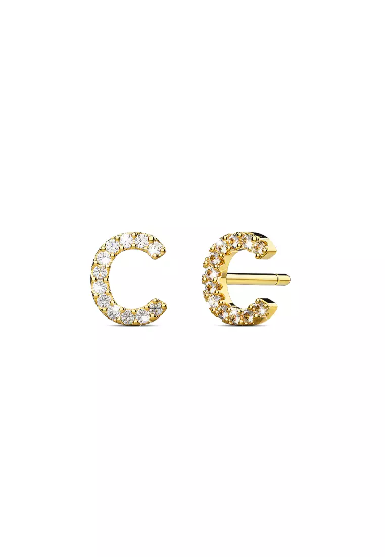 925 SignatureSolid 925 Sterling Silver Glamour Alphabet Letter Earrings Gold - C - Default6074.352699.08