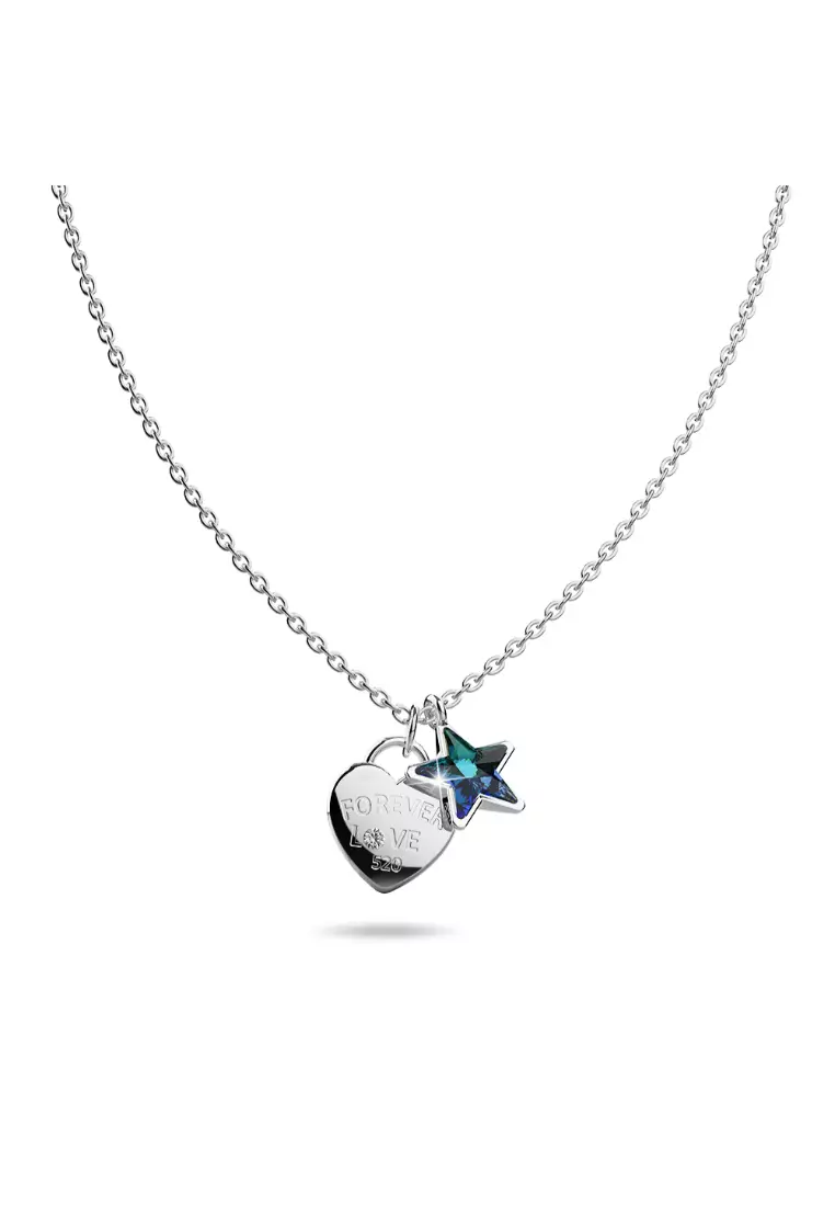 Solid 925 Sterling Silver Heart-Shaped Pendant and Bermuda Blue Necklace Embellished with Crystals from SWAROVSKI®