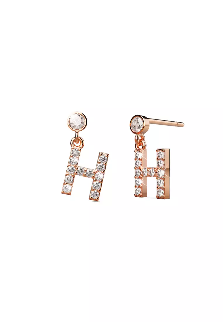 925 SignatureSolid 925 Sterling Silver Initial Crystal Personalised Alphabet Letter Earrings Rose Gold - H - Default8428.753201.36