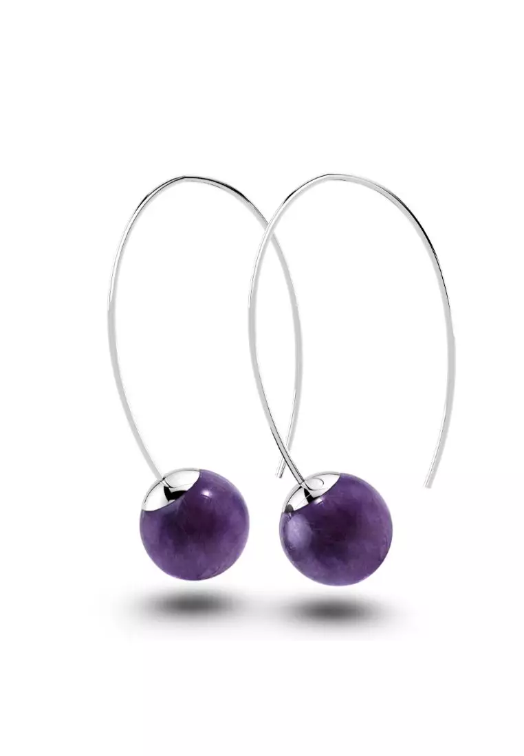 Solid 925 Sterling Silver Round Amethyst Dangle Earrings