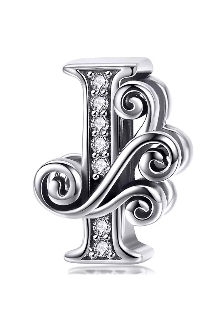 Solid 925 Sterling Silver Vintage Inspired Antique Alphabet Charm I