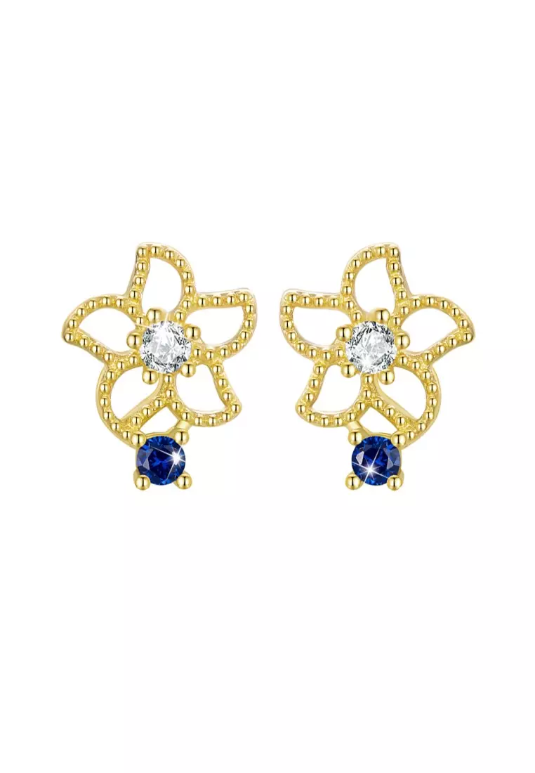 925 SignatureSolid Silver Mono Blue Flower Earrings In Gold5744.744645.00