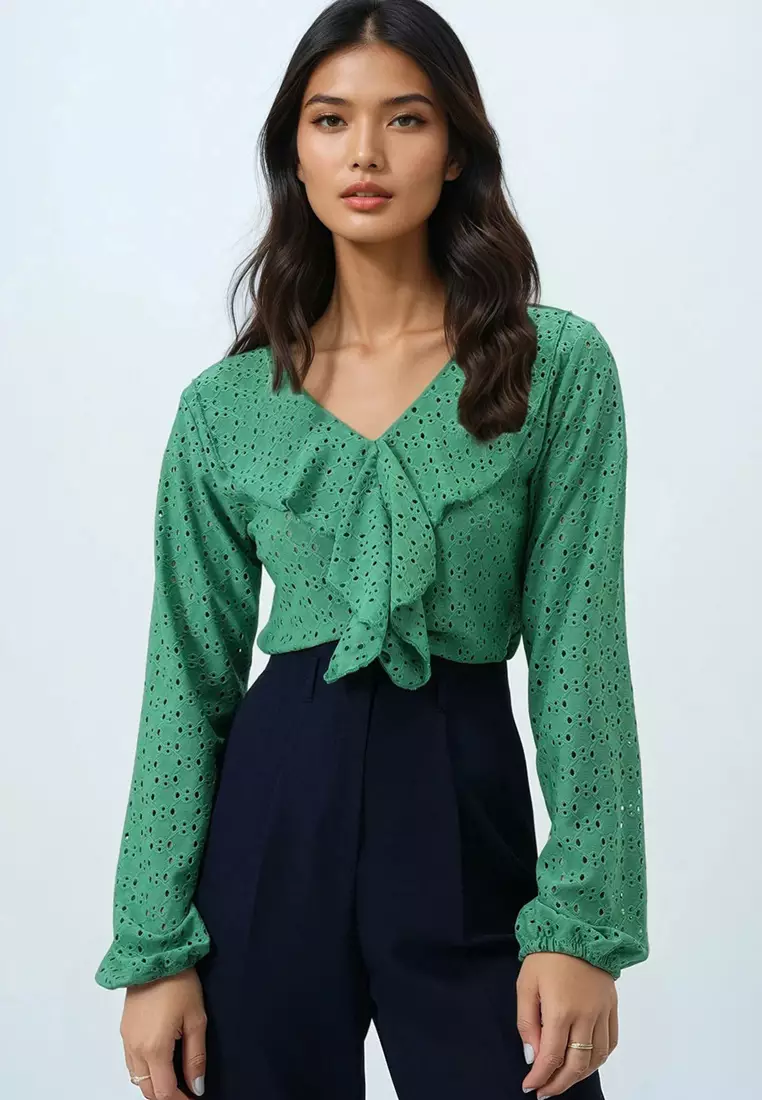 V-Neck Ruffle Front Blouse