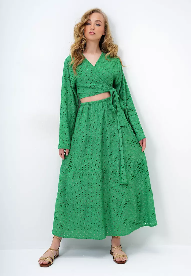 Women's Green Katkat Flounce Guipure Premium Skirt Alc-X14141