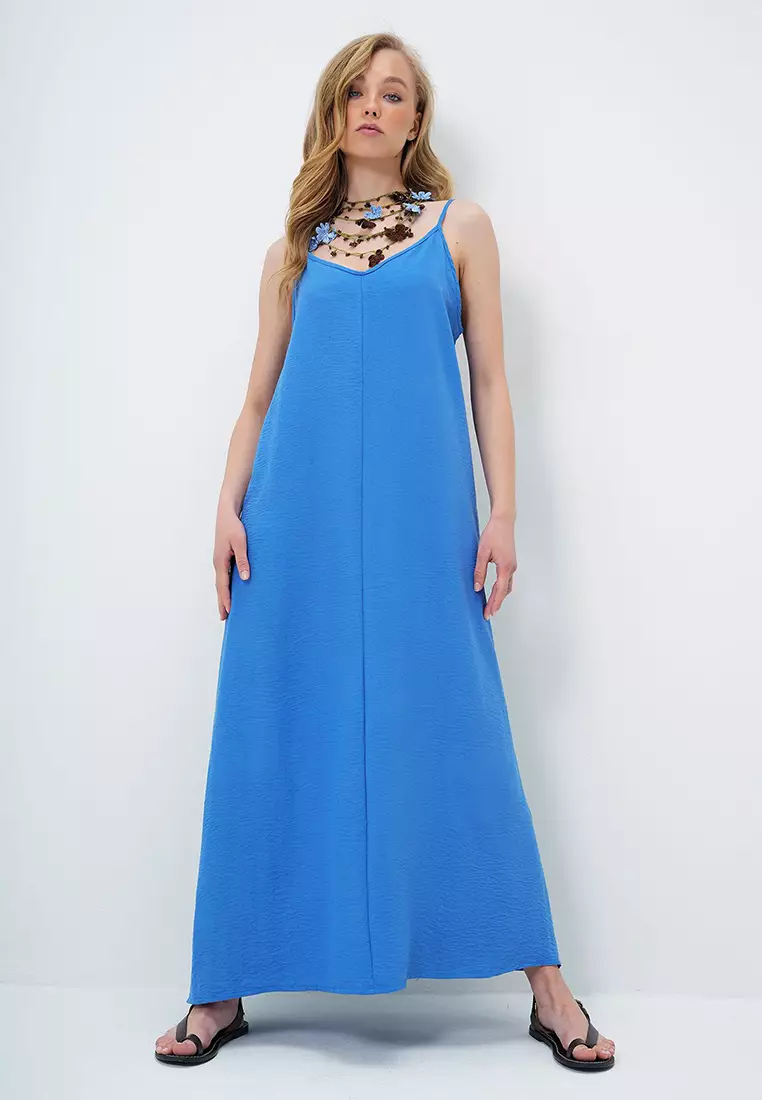 AlacatiWomen's Indigo Blue Adjustable Strap V-Neck Aerobin Summer Dress Alc-X140672049.001269.00