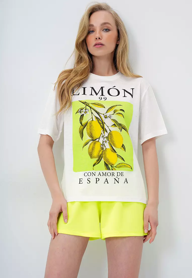 AlacatiWomen's Lemon Yellow Lemon Printed Cotton Basic T-Shirt And Shorts Pajama Set Pjm-X139031169.00942.00