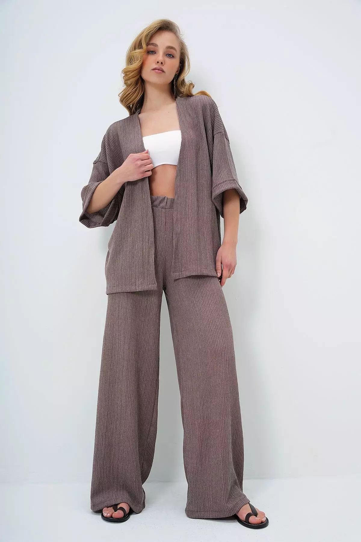 Women's Mink Double Sleeve Wrap Fabric Summer Kimono And Trouser Set