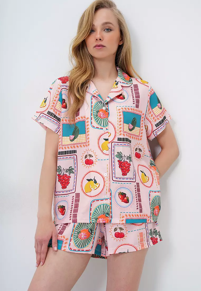AlacatiWomen's Powder Patterned Front Buttoned Woven Shirt And Shorts Pajama Set Pjm-X138902239.001408.00