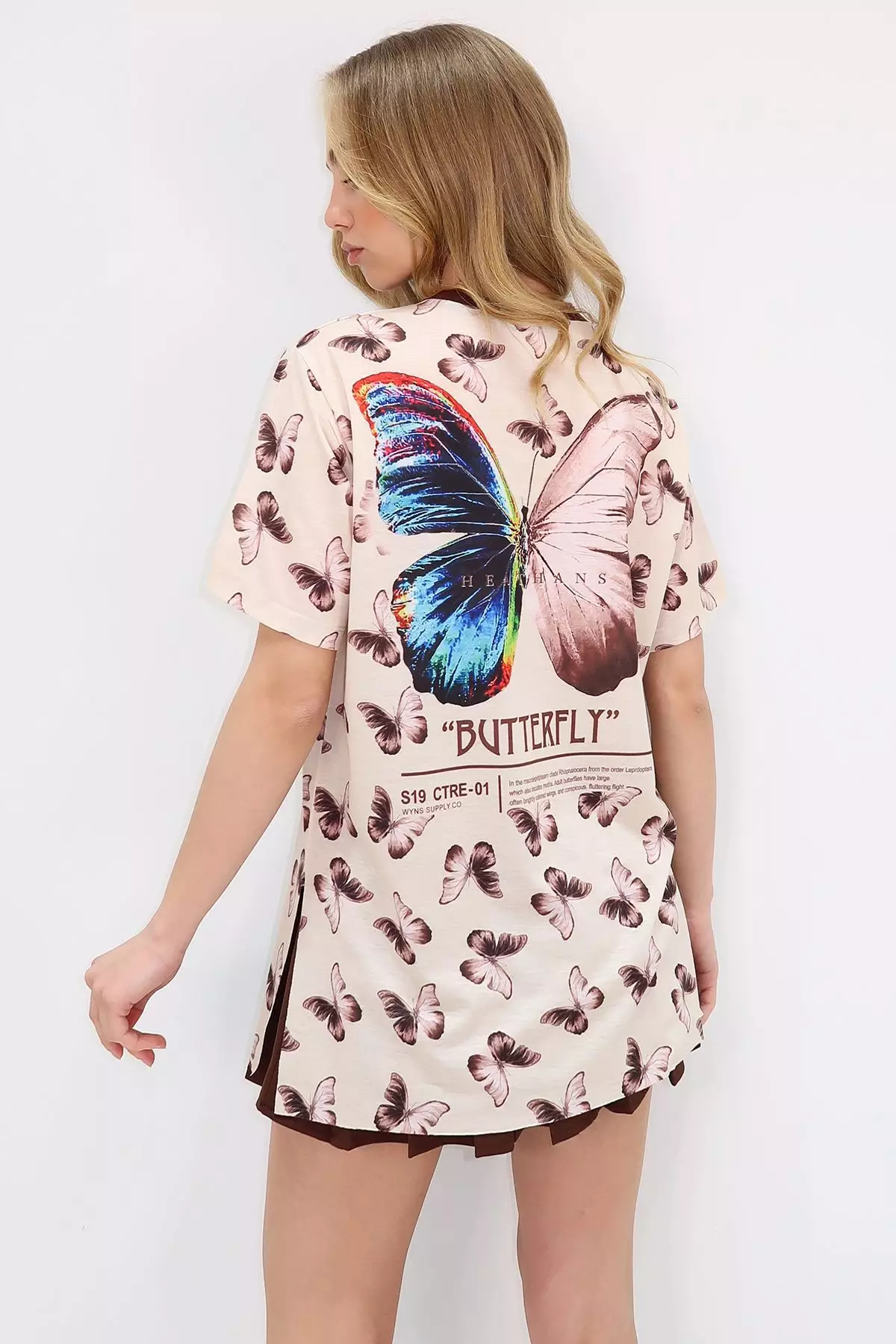 Women's Stone Crew Neck Digital Printed Side Slit Sweatshirt