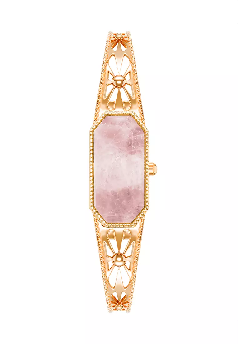 Rose Quartz Cover with Rose Quartz Mother of Pearl Dial Rose Gold Octagon Brass Watch