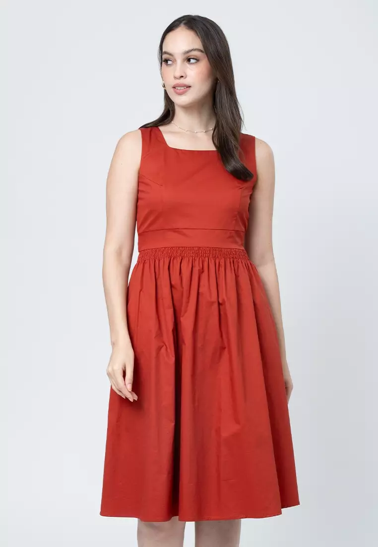 Kaya Dress with Square Neckline and Fabric Belt