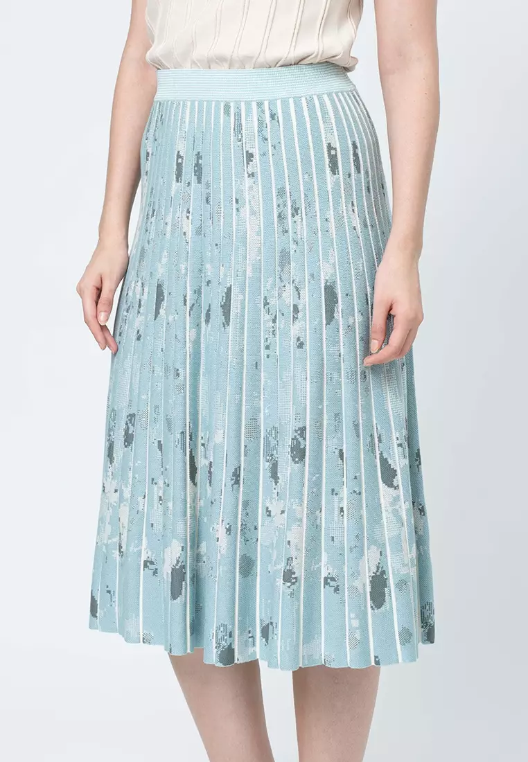 Veda Pleated Knit A-Line Skirt with Elastic Waistband