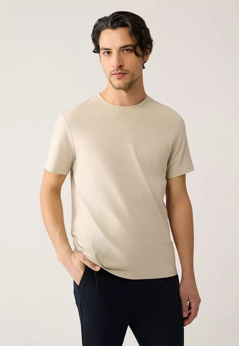 AvvaMen's Beige 100% Cotton Breathable Crew Neck T-Shirt E001000999.00773.00