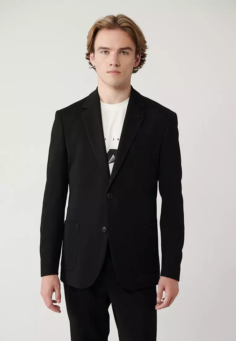 AvvaMen's Black Mono Collar Lined Slit Jersey Fabric Jacket B00400012959.00