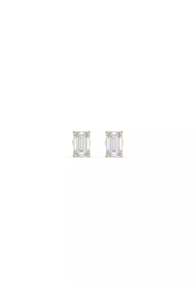 1.28ct TDW Refined Emerald Lab Grown Diamond Stud Earrings in 14K Yellow Gold D/E-VVS/VS