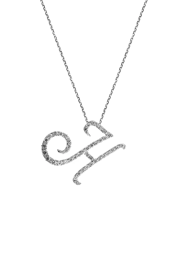 Pavé Lab Grown Diamond 'H' Initial Pendant in White Gold D/E-VVS/VS (0.34ct TDW) with chain