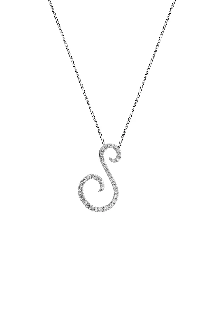 Pavé Lab Grown Diamond 'S' Initial Pendant in White Gold D/E-VVS/VS (0.27ct TDW) with chain