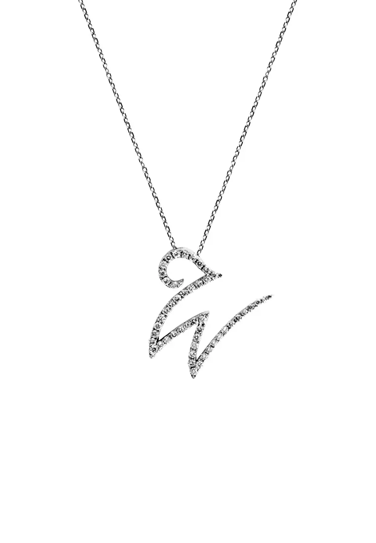 Pavé Lab Grown Diamond 'W' Initial Pendant in White Gold D/E-VVS/VS (0.30ct TDW) with chain