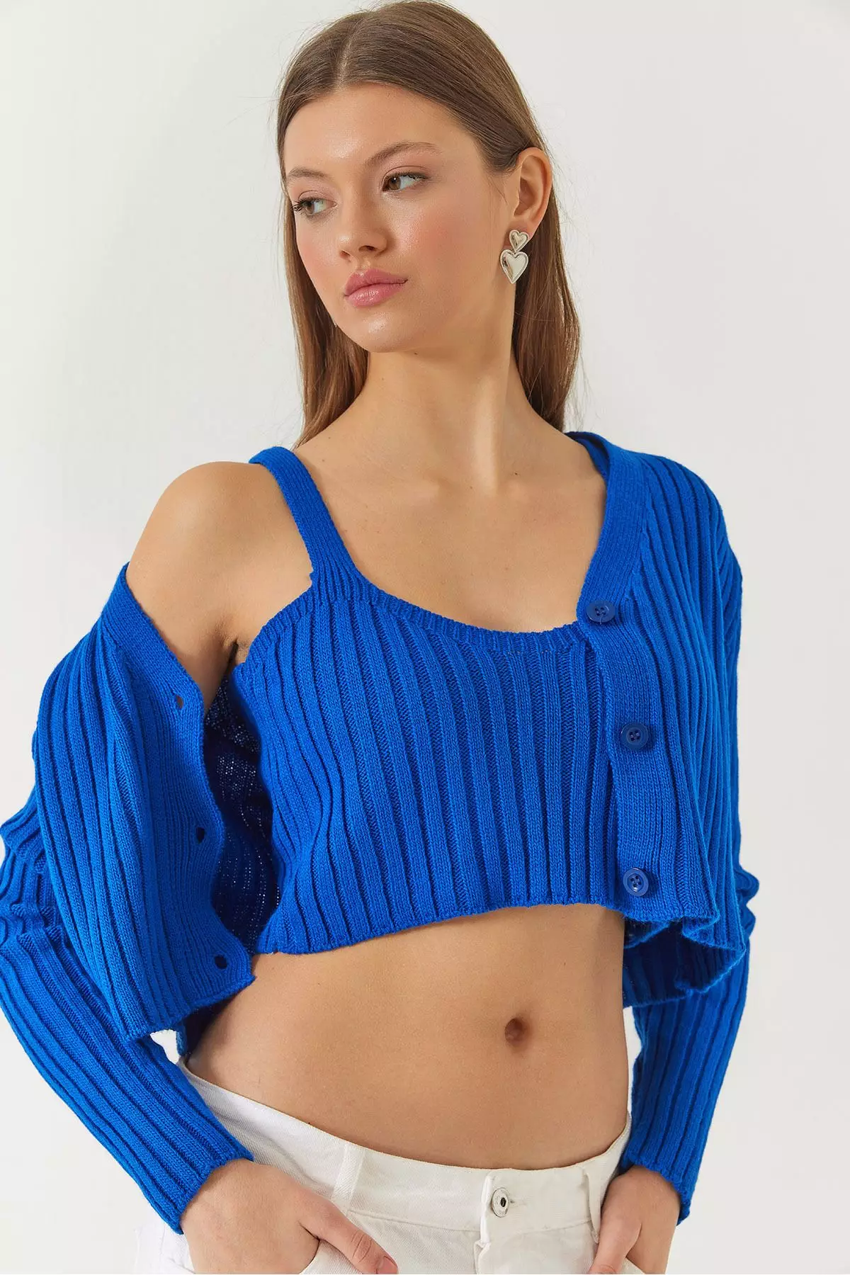 Bianco LucciWomen's Cardigan Crop Tank Top Double Knitwear Set2029.001490.90