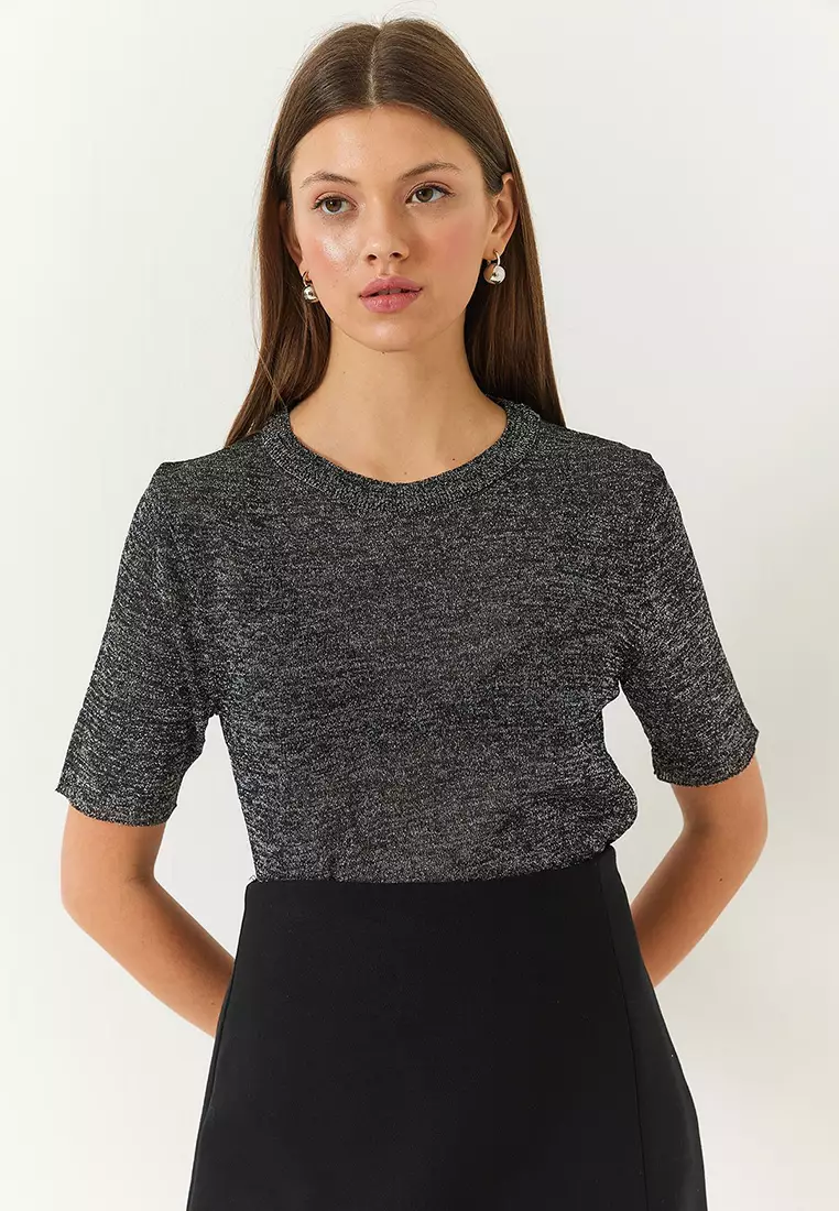 Bianco LucciWomen's Crew Neck Self-Shiny Short Sleeve T-Shirt 602614431549.001086.00