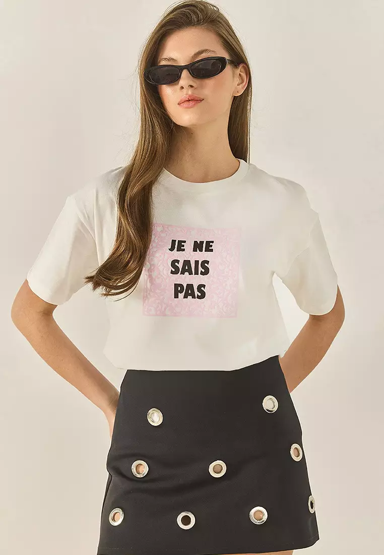 Bianco LucciWomen's Crew Neck Short Sleeve Printed Cotton Loose T-Shirt 5447 602832891319.00926.00