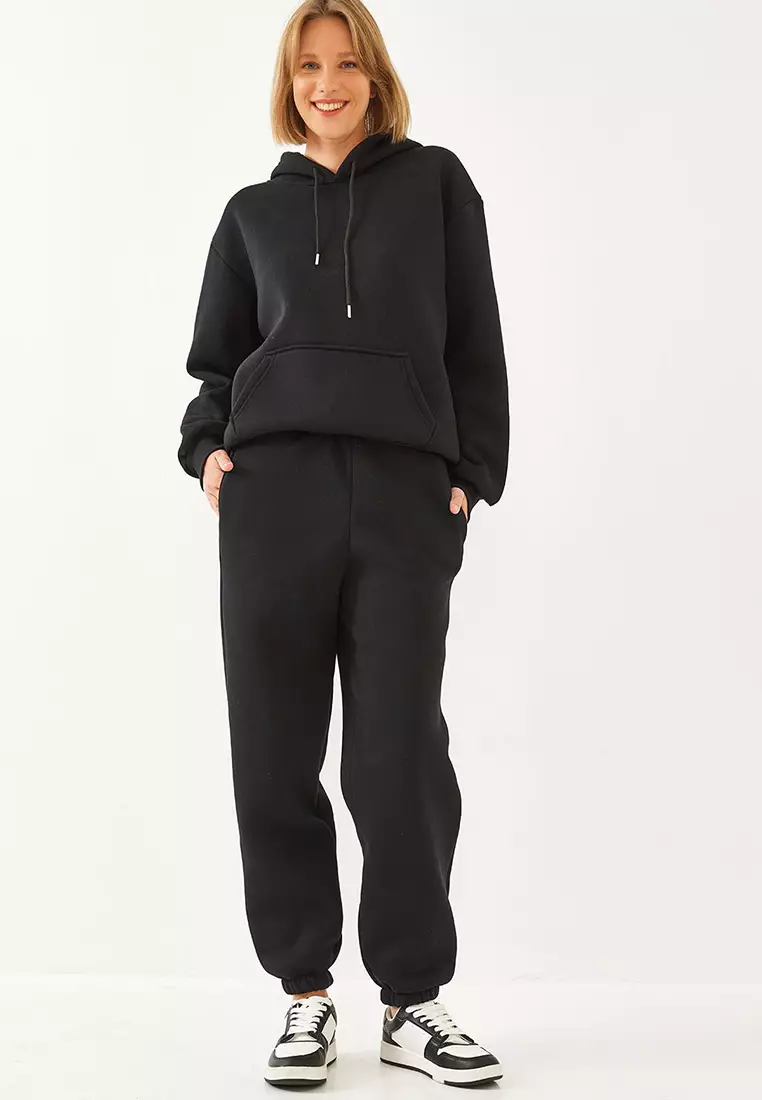 Bianco LucciWomen's Kangaroo Pocket Hooded Bottom-Top Set Mbhs014 606010143039.002770.90