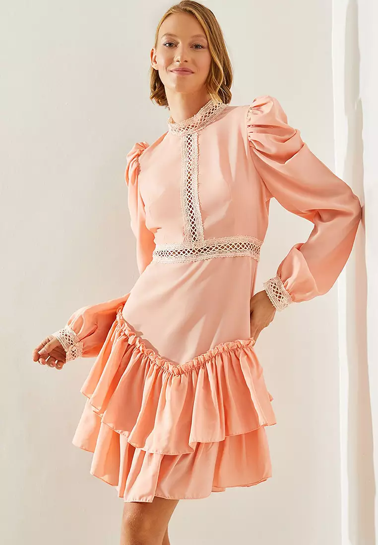 Women's Lace Detailed Layered Ruffle Skirt Dress 22200 60251491