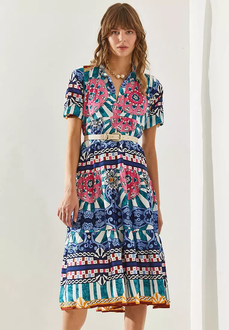 Bianco LucciWomen's Magnificent Collar Katkat Patterned Viscose Dress 602512872689.002530.90