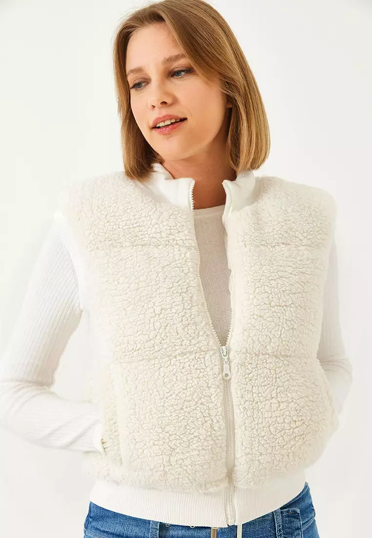 Women's Ribbed Pocket Detailed Zippered Teddy Vest 939125 60261183