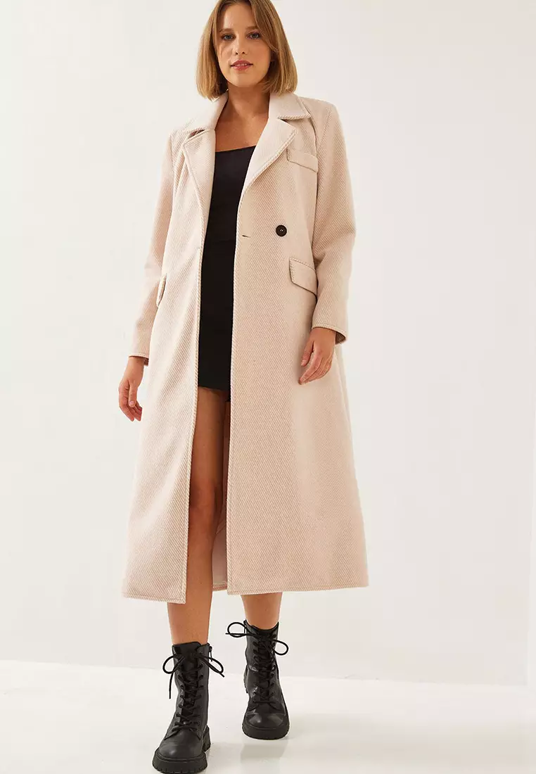 Bianco LucciWomen's Sleeve Badge Detail Long Cashmere Coat 2496 602610015729.005333.90