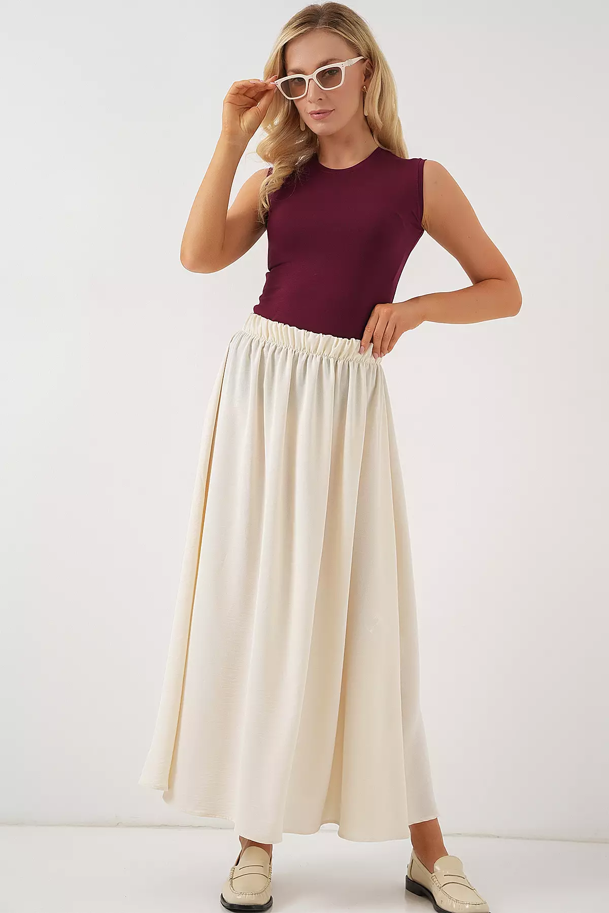 Women's Long Ayrobin Skirt 8050 - Cream