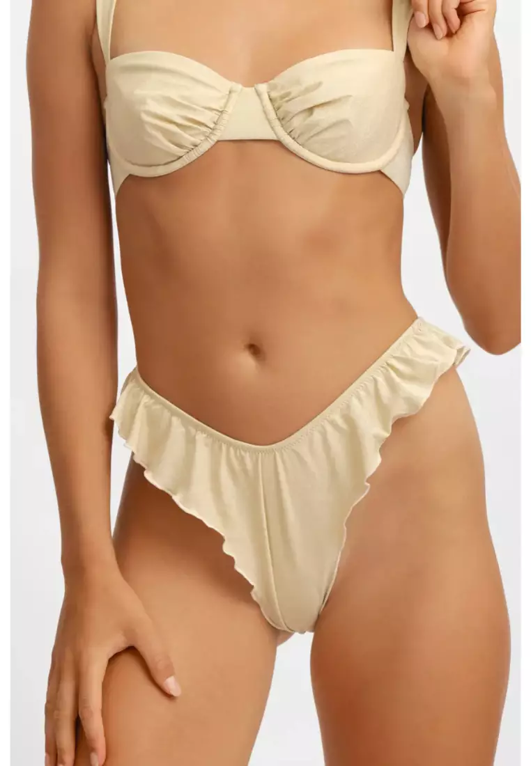 Elsie Ruffled Cheeky Bikini Bottoms / Champagne Shimmer