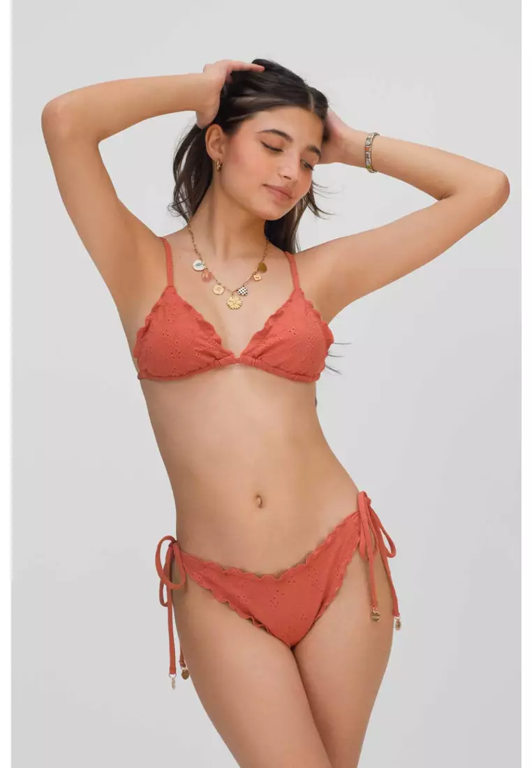 Emma Frilled Triangle Bikini Top / Spice Eyelet