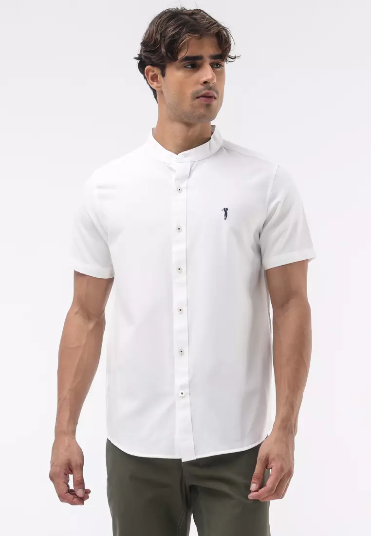 - Neck: Mandarin collar