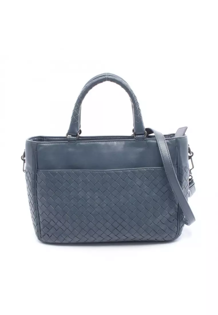 Pre-Loved BOTTEGA VENETA Intrecciato Handbag leather Navy 2WAY