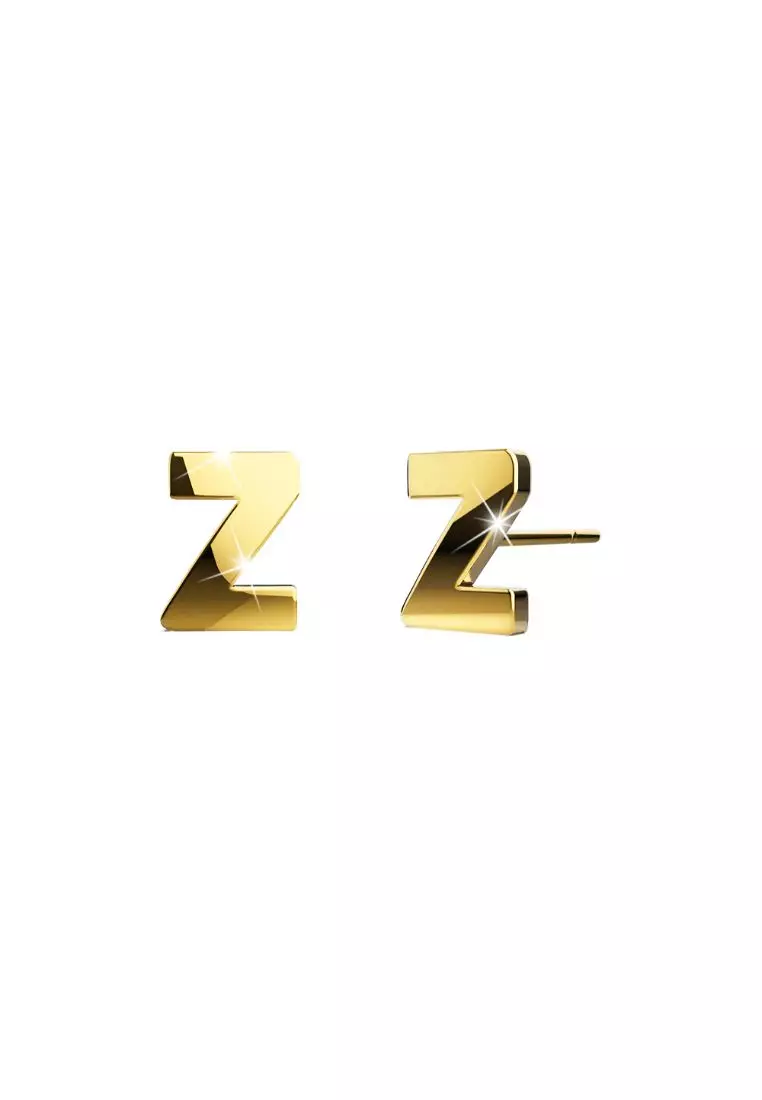 Bold Alphabet Letter Initial Charm Earrings in Gold Tone - Z