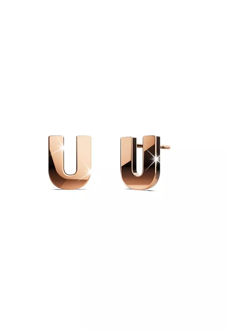 Bold Alphabet Letter Initial Charm Earrings in Rose Gold Tone - U
