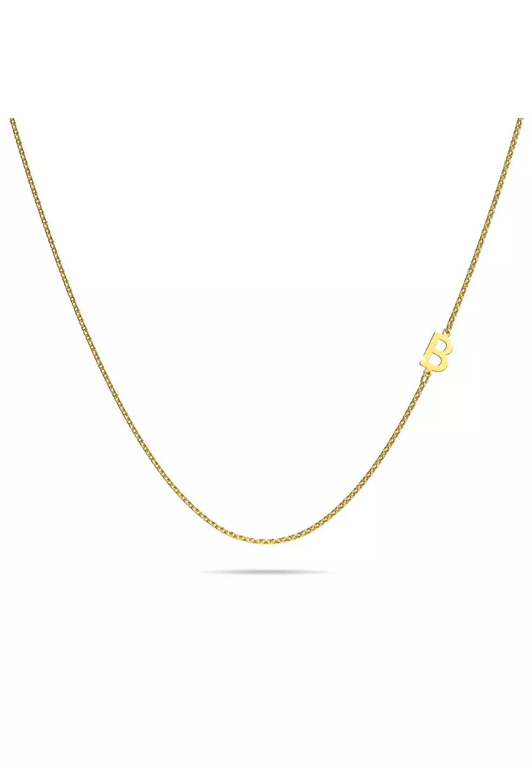 Bold Alphabet Letter Initial Charm Necklace in Gold Tone - B