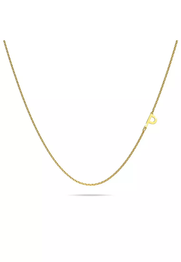 Bold Alphabet Letter Initial Charm Necklace in Gold Tone - P