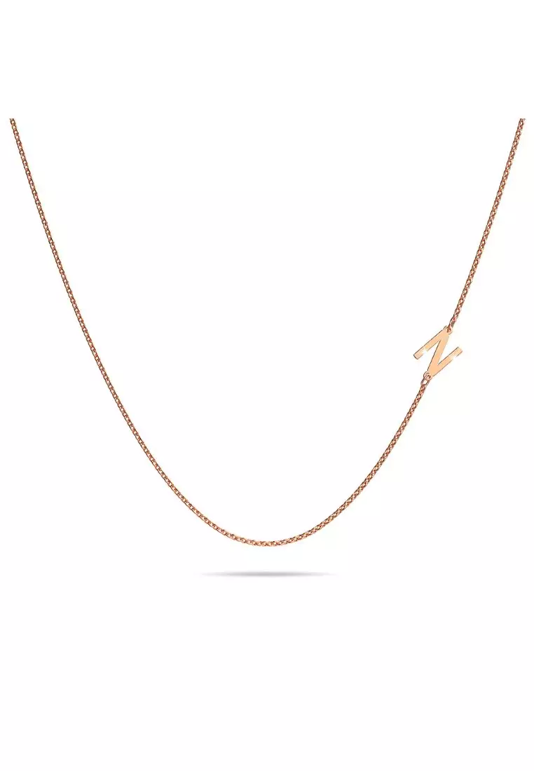 Bold Alphabet Letter Initial Charm Necklace in Rose Gold Tone - N