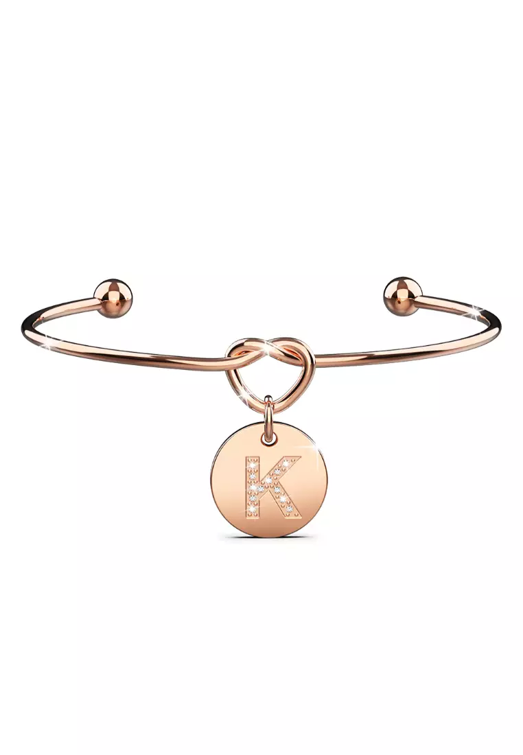 Fancy Alphabet Letter Initial Bangle in Rose Gold -K