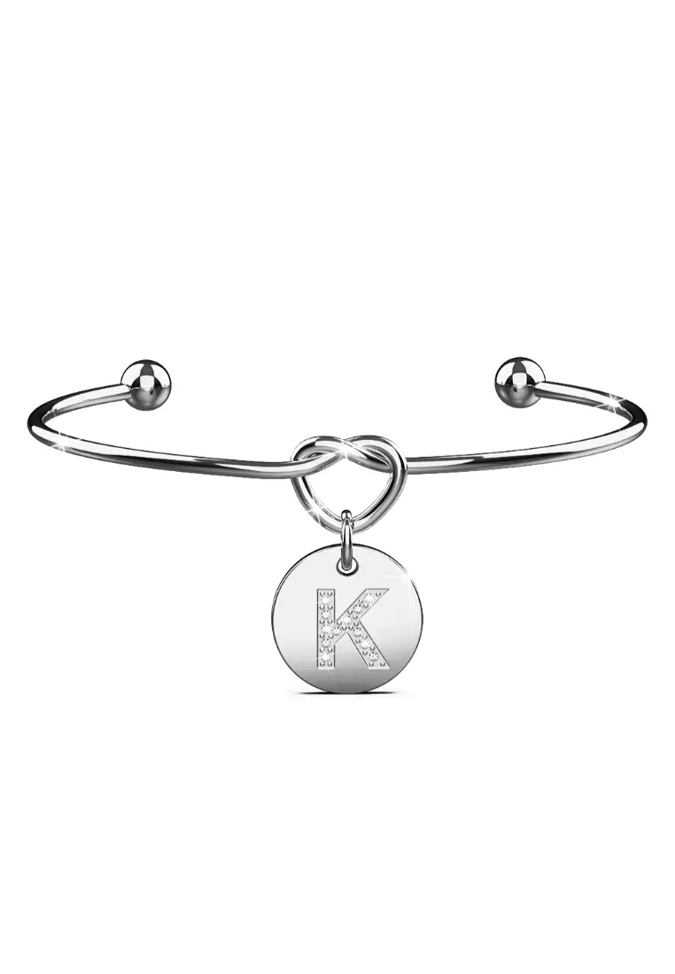 Fancy Alphabet Letter Initial Bangle in White Gold -K