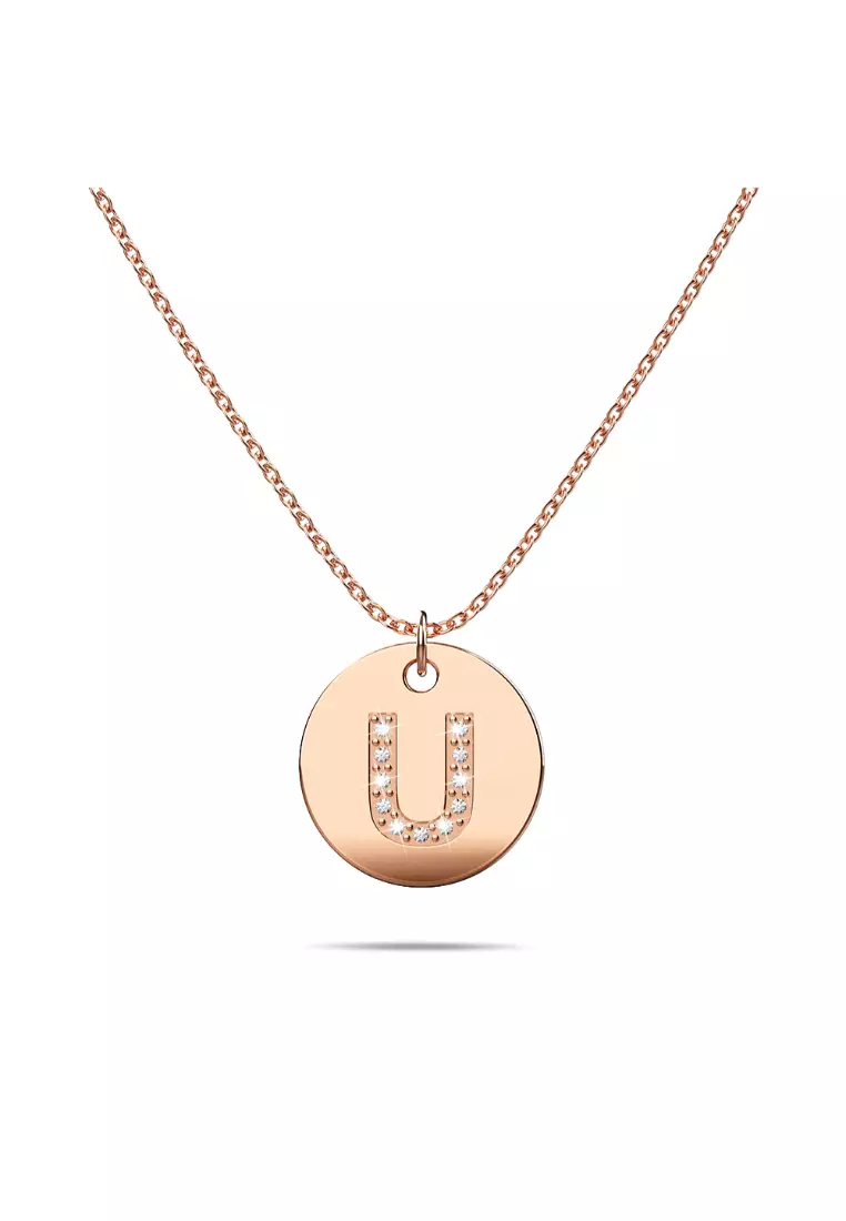 Initials Fabulous Alphabet Letter Necklace Rose Gold Layered Steel Jewellery - U