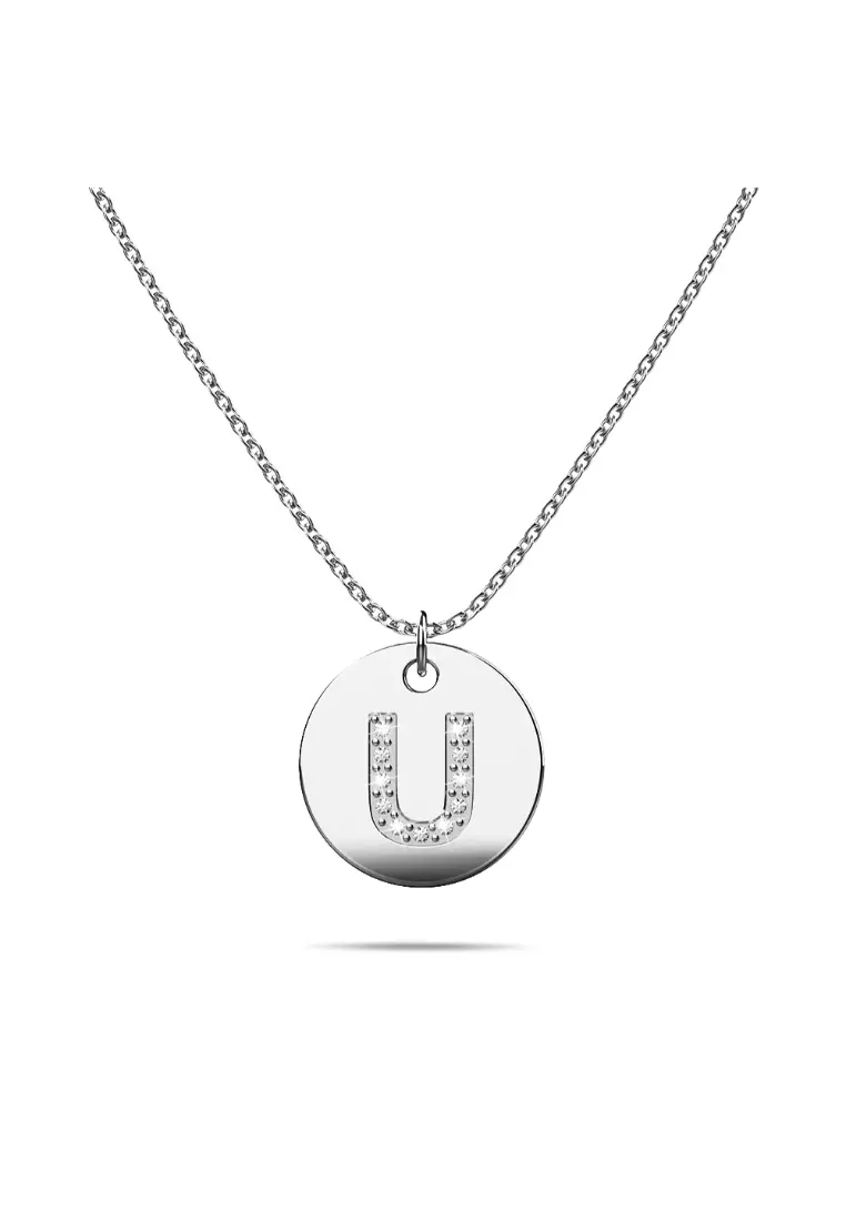 Initials Fabulous Alphabet Letter Necklace White Gold Layered Steel Jewellery - U