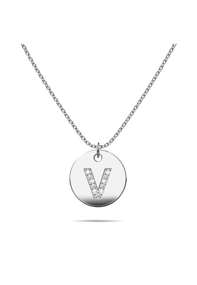 Initials Fabulous Alphabet Letter Necklace White Gold Layered Steel Jewellery - V