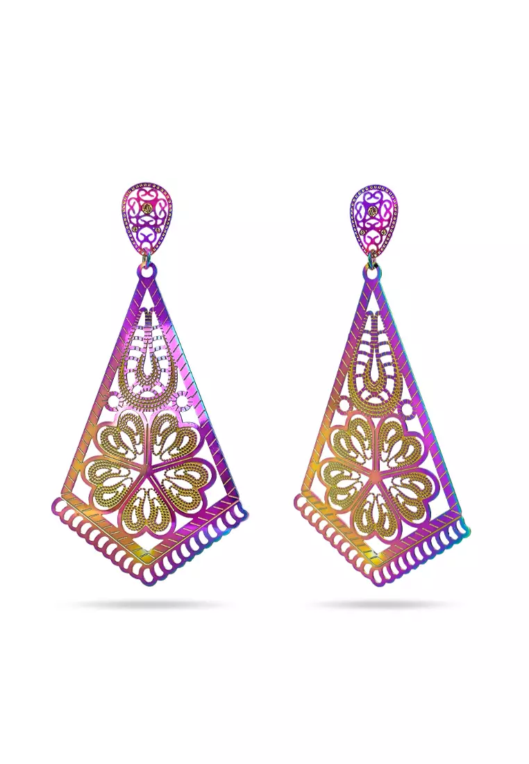 Bullion GoldLaser Etched Kite-Shaped Earrings In Rainbow4708.802196.81
