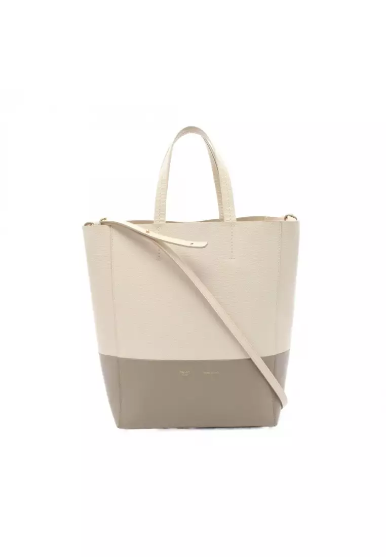 Pre-Loved Celine Vertical Small Hippopotamus Handbag tote bag leather ivory Gray beige 2WAY