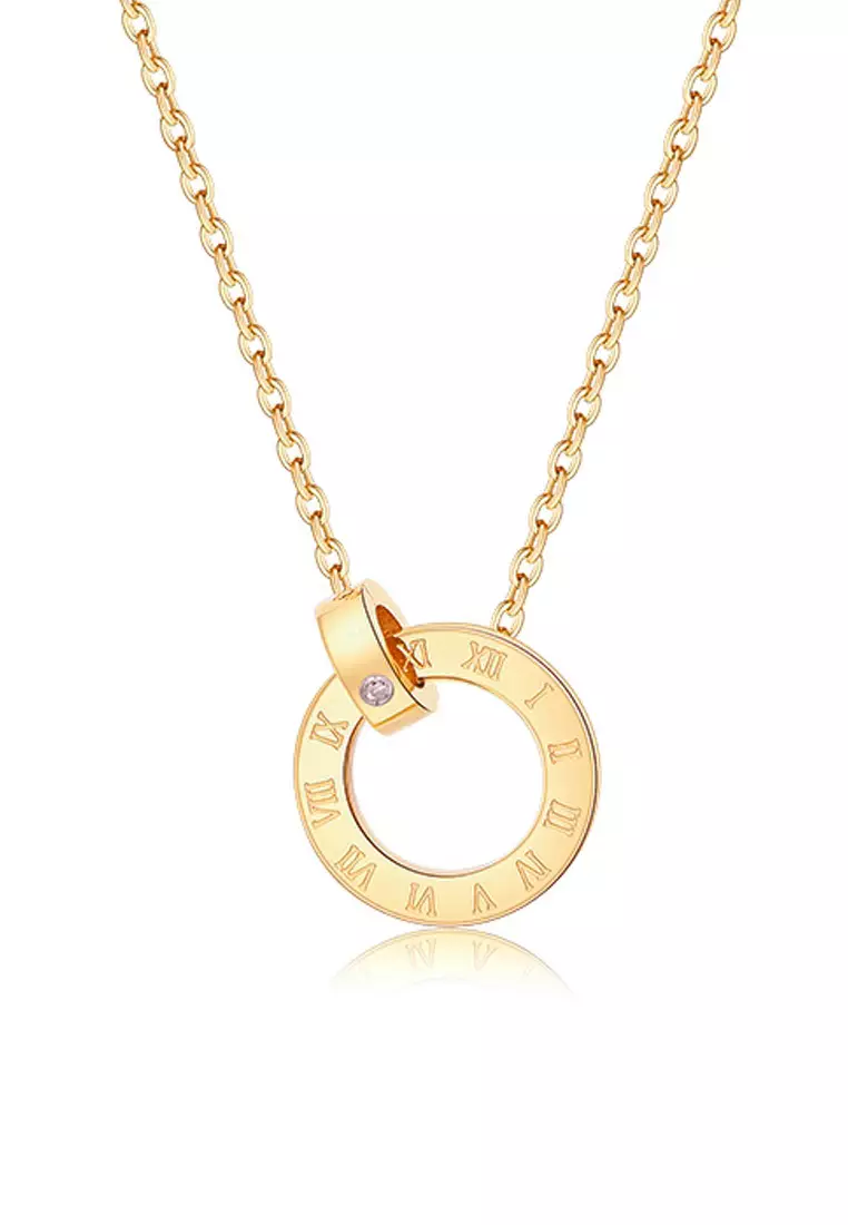 Artemis Interlocking Roman Numeral Ring Pendant Necklace in Gold