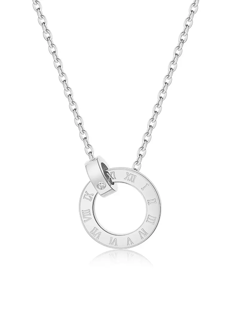 Artemis Interlocking Roman Numeral Ring Pendant Necklace in Silver